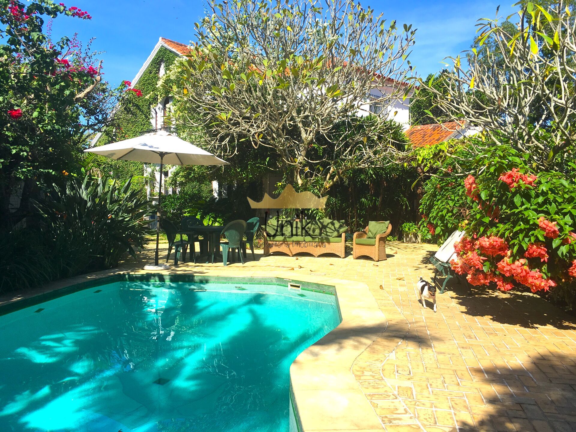 A construção original é sólida, da década de 1920, de arquitetura colonial espanhola com pátio central na entrada da casa deixando os ambientes muito frescos e ventilados. Pertenceu a um artista famoso e abrigou muitas reuniões e festas nos anos dourados. Muito bem conservada, manutenção e atualizações em dia, glamorosa. Janelas de vitrais e lindos azulejos hidráulicos diversos decoram os ambientes. Lavabo, escritório, sala intima, salas de estar com ampla varanda contemporânea, em aço e madeira, virada para a Baia de Guanabara e para os jardins, sala de jantar e dispensa, cozinha gourmet integrada a uma aconchegante área de estar com janelas de vidro e ampla varanda coberta com charmoso caramanchão, próxima à linda piscina. Muitas plantas decoram todos os espaços abertos deixando tudo ainda mais agradável. No andar superior, circundados por uma sacada, que mostra o amplo e belo pátio de entrada da casa no andar inferior, estão 3 quartos, sendo um deles uma suíte master com armário embutido e mais walk-in closet, copa com bancada e pia, equipada com armários, banheiro recém reformado, moderno com linda banheira e sauna no box e agradável varanda com vista.