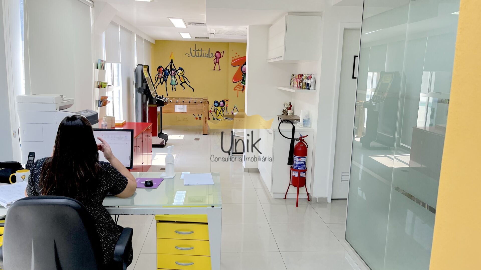 O espaço hoje tem entrada com sala de espera, recepção, 3 banheiros, sala integrada com mesas de trabalho e mesa de reunião, além de copa/cozinha totalmente equipada. As janelas têm vista magnífica para o verde do Jardim Botânico e Cristo. Andar alto.